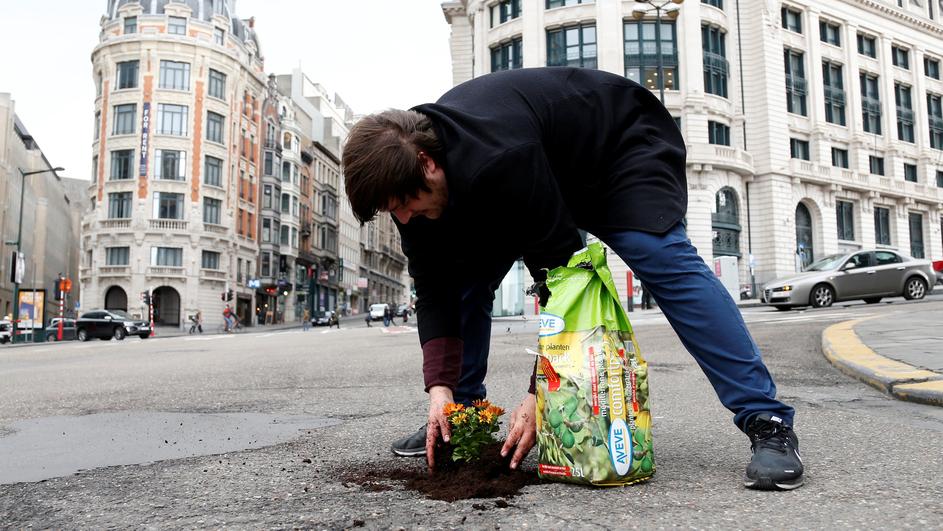 Nizozemac sadi cvijeće u rupe po briselskim prometnicama