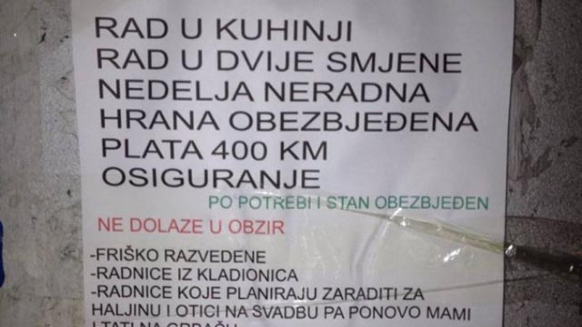 - Friško razvedene, radnice iz kladionica, radnice koje planiraju zaraditi za haljinu i otići na svadbu pa ponovo mami i tati, radnice koje planiraju zaraditi za kartu do zemlje snova (Njemačke), kao i radnice čija je najbolja prijateljica na budžetu nisu poželjne - napisano je.