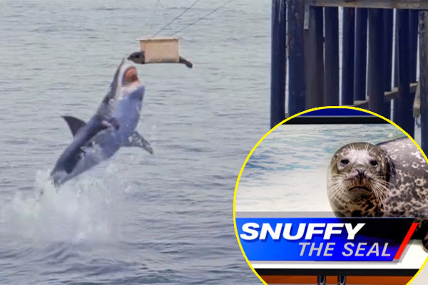 U videu, se ozlijeđena morska medvjedica svečano pušta natrag u ocean, kada masivni morski pas iskače iz vode i jede morsku medvjedicu .