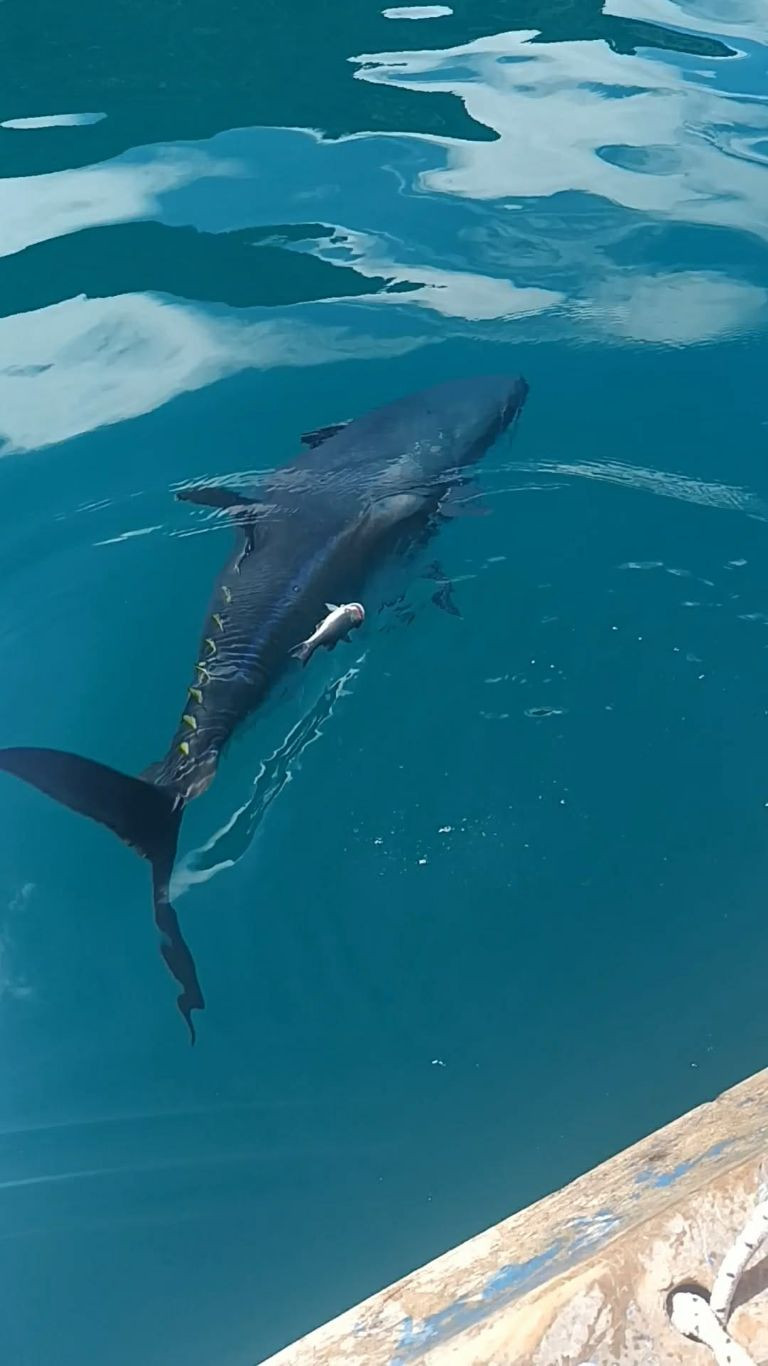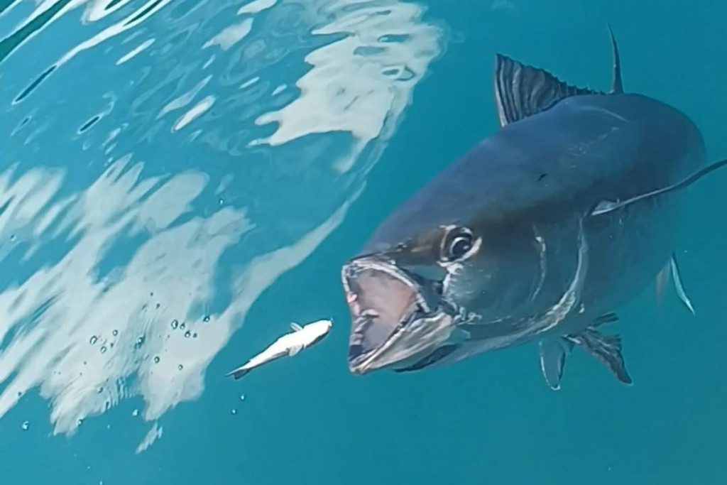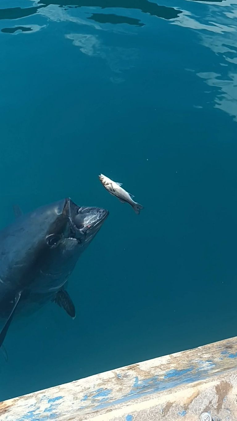 FOTO/VIDEO Rijetka scena iz Jadrana: Beba tuna prišla čamcu i uzimala hranu od ribara