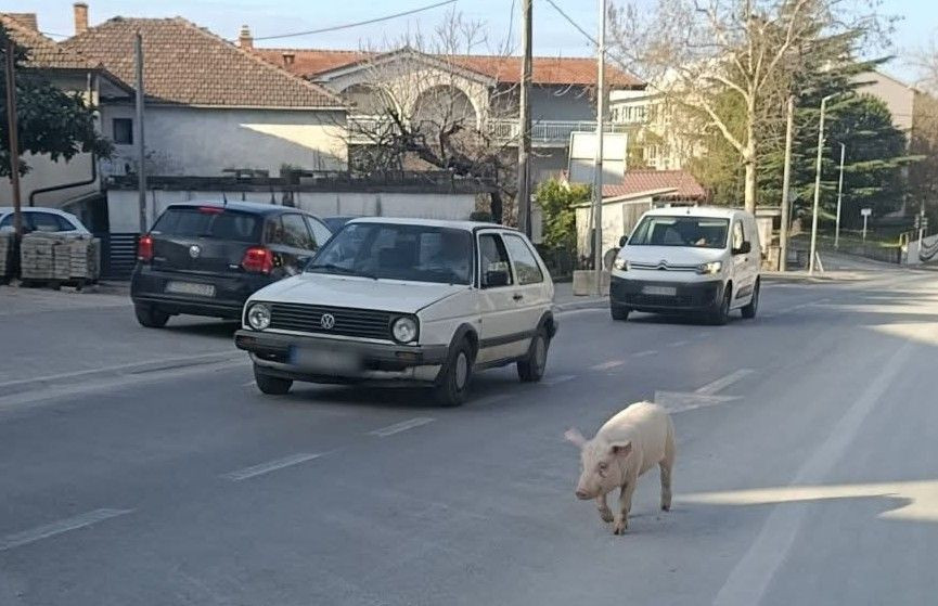 Na fotografiji koja se proširila društvenim mrežama vidi se svinja kako mirno hoda kolnikom među automobilima, zbog čega su vozači morali usporiti vožnju. Neobična situacija privukla je pažnju prolaznika i izazvala brojne reakcije na internetu.