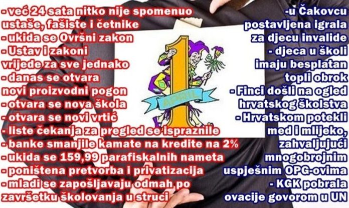 Uglavnom, bez obzira na podrijetlo i vjerodostojnost ponuđenih objašnjenja, istina je da smijeh zdravlje čuva - kada se smijemo postajemo opušteniji, zdraviji i ljepši. A 1. travanj svjetski je dan šale - dan kada se služimo bezopasnim šalama i smicalicama i slatko smijemo na svoj i tuđi račun.