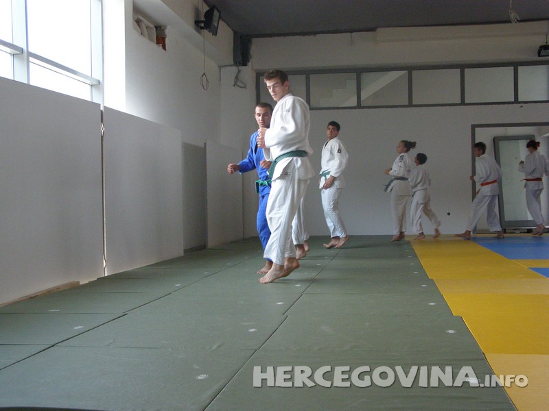 ..., a polaganju je prisustvovalo oko 50 judista. Pred komisijom za polaganje najprije su izašli stariji džudisti koji su polagali za veće pojaseve, tj za zelene i plave pojaseve.