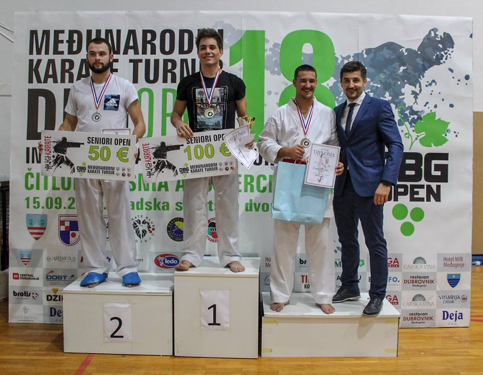 U kategoriji seniori open prvo mjesto te nagradu od 100€ osvojio je Marin Brkić iz Karate kluba Neretva Mostar. Drugo mjesto i nagradu od 50€ osvojio je Jakov Bunjevac iz Karate kluba Kik Ivanić Grad. Treća mjesta i prigodne poklon pakete osvojili su Ivan Planinić iz Karate kluba Hercegovina Čitluk i Nikola Vuletić iz Karate kluba Bratstvo Podgorica.