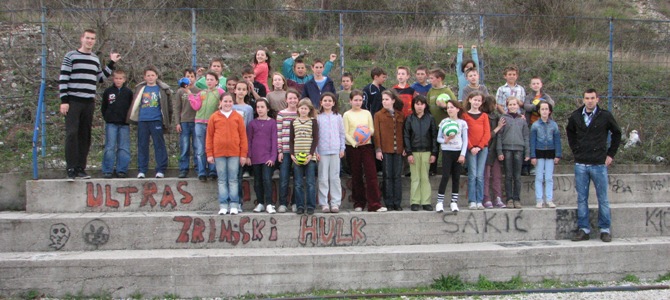 U ugodnom druženju sa djecom iz OŠ Ivan Gundulić i njihovom učiteljicom članovi Udruge, i nogometaši Zrinjskog proveli su sat vremena, a na kraju su djeca zamolila Šunjića i Kordića da sa njima odigraju jednu utakmicu, što su oni za zadovoljstvom i prihvatili.