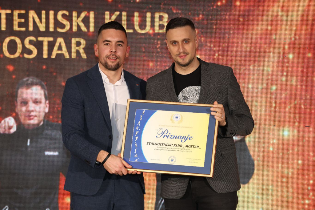 U mostarskom hotelu Mepas u četvrtak su dodijeljena priznanja najboljim sportašima, kolektivima i sportskim djelatnicima za 2025. godinu u organizaciji Sportskog saveza Grada Mostara. Svečanost je održana u dvorani Queen, a laureati su proglašeni u ukupno 16 kategorija prema odluci stručnog žirija.