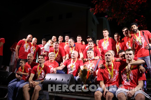 Na proslavi su navijači pozdravili i košarkaške heroje igrače Zrinjskog koji su sinoć osvojili prvu povijesnu titulu prvaka BiH.