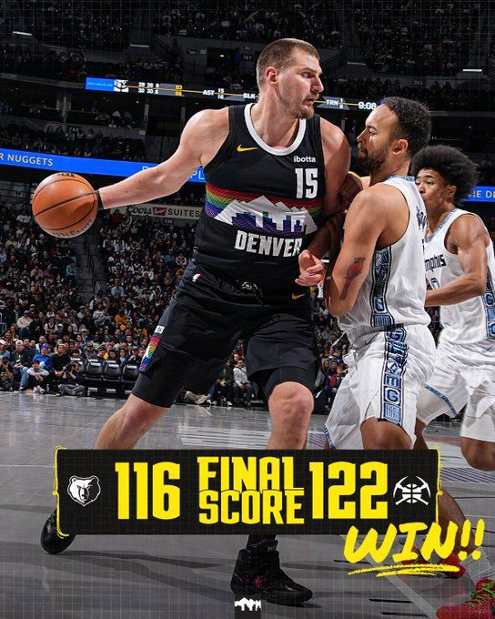 Nikola Jokić i Jamal Murray predvodili su Denver Nuggetse do pobjede 122:116 nad Memphis Grizzliesima u utakmici odigranoj u noći na četvrtak, zadnjoj uoči pauze za NBA All-Star vikend. Jokić je upisao svoj 184. triple-double u karijeri s učinkom od 26 poena, 15 skokova i 11 asistencija. Osigurao ga je već u trećoj četvrtini. Odličnu statistiku kvari mu devet izgubljenih lopti.