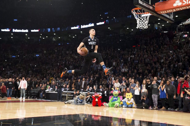 Kako bi to nadmašio, branitelj naslova Zach LaVine je uzeo zalet od sredine igrališta, odrazio se malo ispred crte za slobodna bacanja, u letu provukao loptu kroz noge i završio jednoručnim zakucavanjem te četvrti put u finalu zaradio maksimalnih 50 bodova.