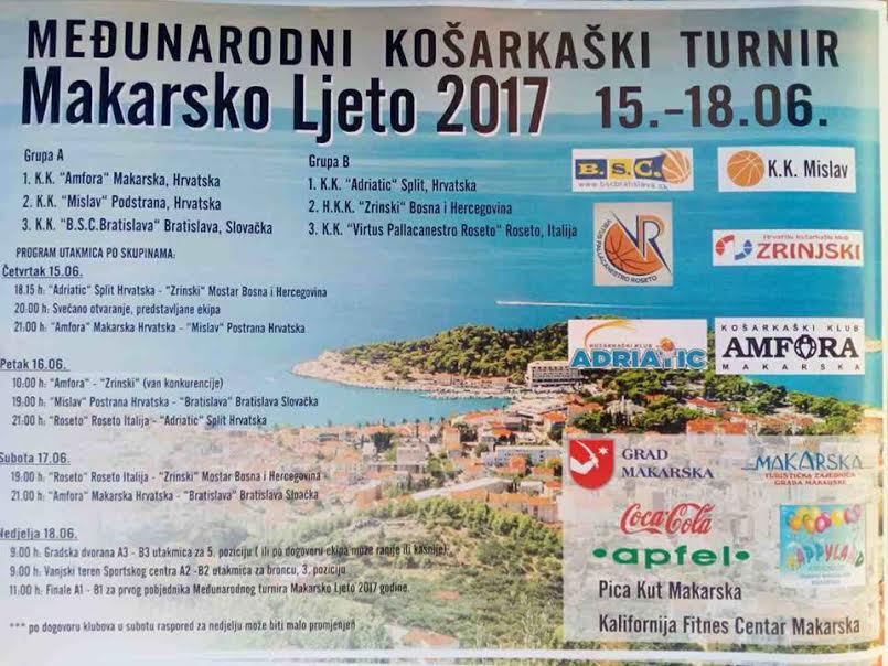 Kako medijski podržavamo sve međunarodne turniri tako će i Makarsko Ljeto 2017.g imati svojih "15 minuta" u radio emisiji Makarska Trica u kojima će gostovati KK."Virtus Pallacanestro Rosrto" Roseto Italija - petak 16.06 u 11.15h, dok će na vrući stolac voditeljice Žane, trener i igrač HKK Zrinjskog 17.06 u subotu također 11.15h. Obje emisije