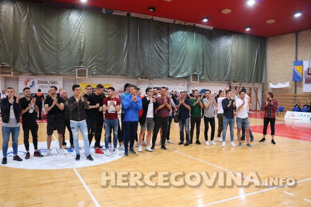 ... u dvoranu su ušli nogometaši starog/novog prvaka BiH HŠK Zrinjski. Isti su dobili gromoglasan aplauz od domaćih navijača, a navijači i igrači zajedno su zapjevali pjesmu "Hej Zrinjski ko nam brani, da bude sve ko lani", te na taj način još jednom proslavili treću uzastopnu titulu prvaka BiH.