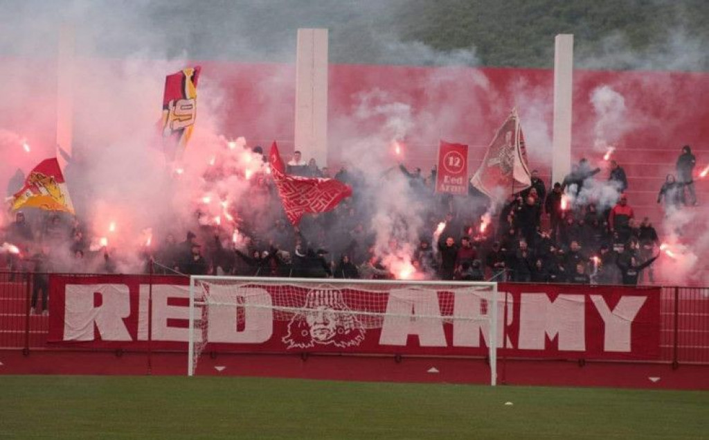 Najvatreniji navijači Veleža, popularni Red Army, nakratko je prekinu današnji susret Veleža i Leotara u Mostaru. Naime, nakon velike bakljade i ubačenih sredstava u teren glavni sudac je zbog velike količine dima prekinuo utakmicu koja se nastavila nakon nekoliko minuta.