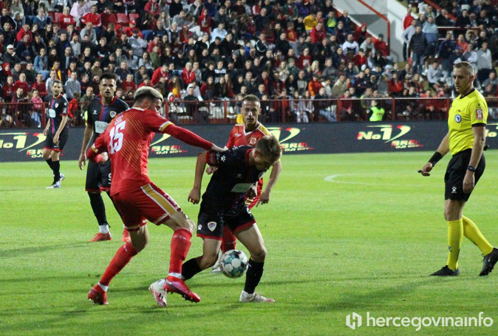 Već u drugoj minuti stopostotna šansa za Velež. Mihael Mlinarić pritisnuo je golmana Borca Manojlovića, uklizao je i lopta se odbila prvo u prečku, a onda i ofanzivcu na glavu, no nije uspio da pogodi mrežu s samo nekoliko metara od linije.