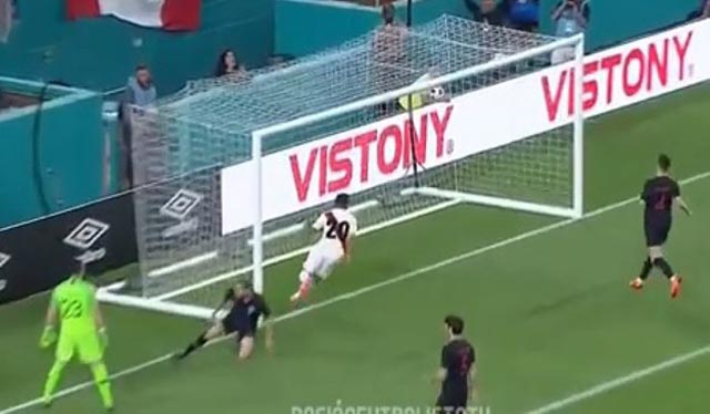 Još od prvog napada na utakmici vidjelo se koliko će problema hrvatska obrana predvođena Ćorlukom i Vidom imati s brzonogim Južnoamerikancima. Kola su nizbrdo krenula u 12. minuti nakon pogrešaka Ćorluke i Strinića. Nisu uspjeli izbiti loptu daleko od kaznenog prostora, Strinić ju je čak proslijedio Carrillu koji je s vrha kaznenog prostora uz dosta sreće prevario Subašića.