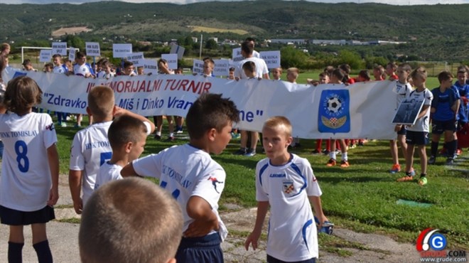 - Ovdje imamo dva imena, vi se njih ne sjećate, ali vaši roditelji i treneri ih se sjećaju, to su Dine i Miš. Na svjetskoj sceni su vaši uzori Modrić i Mandžukić, ugledajte se na njih, samo ćete tako strpljivim radom, uvažavajući vaše uzore, postići one rezultate kojima težite. Ovom porukom, treći memorijalni nogometni turnir "Zdravko Jurčić Miš i Dinko Vranješ Dine" proglašavam otvorenim - kazao je Grizelj.