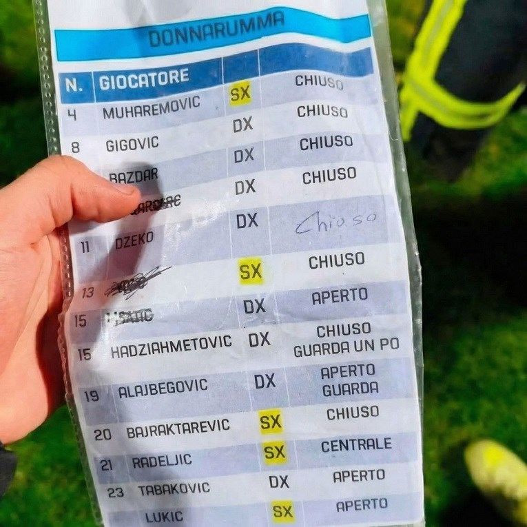 Na društvenim mrežama ubrzo su se pojavila i objašnjenja oznaka s Donnarumminog papira. NUMERO/GIOCATORE označava broj i ime igrača, SX i DX nogu kojom puca, dok izrazi CHIUSO i APERTO opisuju kut u koji igrač najčešće šutira. Dodatne napomene poput GUARDA ili GUARDA UN PO odnose se na specifične navike igrača pri izvođenju jedanaesteraca.