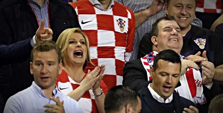 Oko vrata je imala poseban šal - onaj HNK Mitnice, vukovarskog niželigaša i kluba koji su osnovali vukovarski branitelji krajem 2008. godine. Imala je i hrvatski dres na sebi. Kolinda je glasno navijala za reprezentaciju i pjevala: