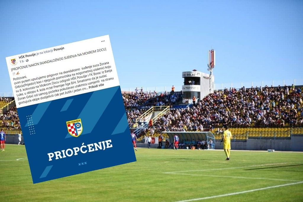 "Ovim putem upućujemo prigovor na skandalozno suđenje suca Zorana Grbića(Prijedor) kao i njegovih pomoćnika na nogometnoj utakmici koju su 8. kolovoza na Mokrom Docu odigrali HŠK Posušje i FK Borac iz Banja Luke, u sklopu 4. kola m:tel Premijer lige BiH. Smatramo da je sudac Zoran Grbić od samog početka pokušavao utakmicu usmjeriti na stranu gostujuće ekipe dodijelivši čak pet žutih i jedan crveni karton u prvih 45 minuta utakmice što je izazvalo revolt i negodovanje publike. Njegovo pristrano suđenje može se jasno vidjeti na snimkama budući da je izravan prijenos utakmice bio na tv-u, a bojimo se i pomisliti scenarija koji bi nam dotični izrežirao da utakmica nije bila u izravnom prijenosu. Također želimo istaknuti i nekoliko nepostojećih zaleđa na štetu domaće ekipe, te nastavak kartoniranja u utakmici bez ozbiljnog prekršaja od strane domaćina zbog čega se ne možemo oteti dojmu da nas je uz ovu utakmicu želio oslabiti i za nadolazeće susrete kroz suspenzije kartonima", ističu.