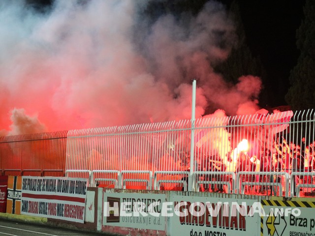 Za razliku od terena puno je bilo zanimljivije na tribinama stadiona, pogotovo na onom dijelu gdje se nalaze mostarski Ultrasi koji su glasno bodrili Plemiće, a bakljada koju su priredili u drugom dijelu bila je fenomenalna.