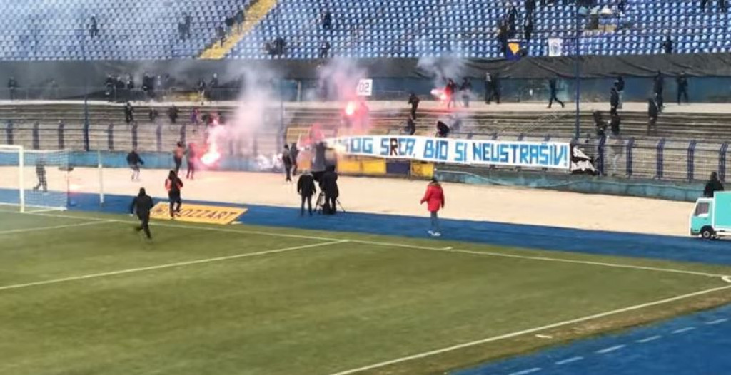 Horde zla prema njima su bacili nekoliko bengalki te su im pokušali oteti jedan transparent koji je bio postavljen na ogradi. Nakon toga je uslijedio kraći sukob na terenu. Kako se neslužbeno doznaje ozlijeđen je jedan navijač Sarajeva.