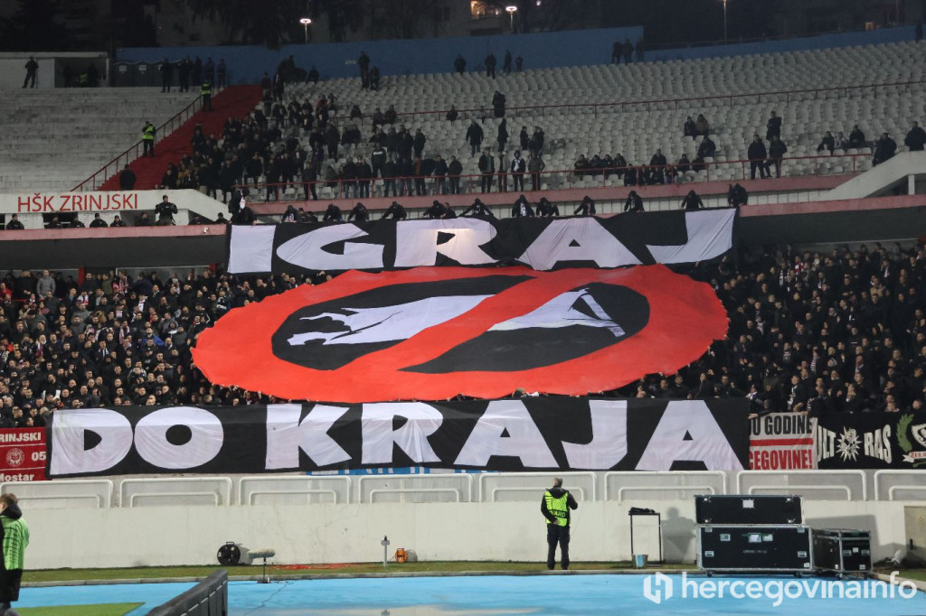 Posebnu simboliku ovoj večeri dala je koreografija navijača Zrinjskog na početku utakmice. Na velikom transparentu stajala je poruka „IGRAJ DO KRAJA“, uz prekriženu bijelu zastavu, jasnu poruku da predaje nema do samog kraja, do posljednjeg sučevog zvižduka. Ono što je počelo kao navijačka poruka s tribina, završilo je kao savršena slika onoga što se događalo na terenu.