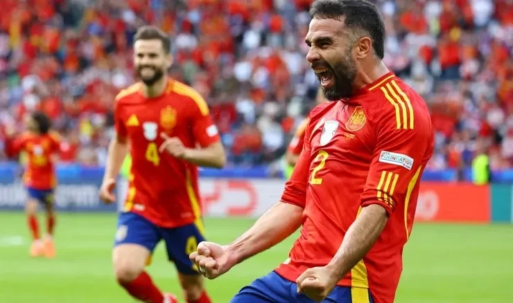 Dani Carvajal se u drugoj minuti sudačke nadoknade prvog dijela pobrinuo da Španjolska ode na poluvrijeme s čak tri gola prednosti. Lamine Yamal ubacio je s desne strane u sredinu, gdje je Carvajal ostao nečuvan na pet metara. Poslao je loptu pored Livakovića za 3:0