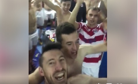 Nakon utakmice u svlačionici Zrinjskog bilo je veselo, i pjevala se dobro poznata pjesma.