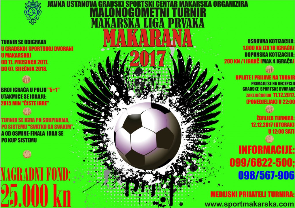 - Malonogometni turnir "Makarska liga prvaka-MAKARANA 2017" igra se u tri dijela.