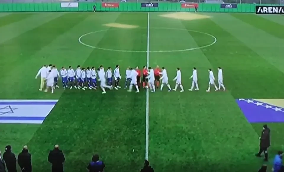 Prije početka utakmice kamere su zabilježile kako većina mladih reprezentativaca Bosne i Hercegovine nije sudjelovala u uobičajenom rukovanju s igračima Izraela.