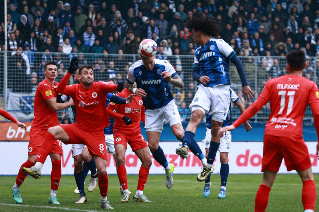 Željezničar je imao sjajnu šansu u 24. minuti. Krpić prolazi po strani, ubacuje loptu, a Boljević puca malo pored gola. Samo minutu kasnije, Mlinarić šutira pored gola Željezničara.