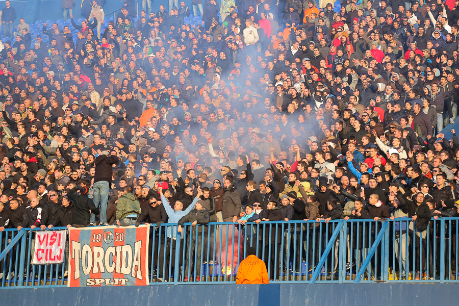 Na stadionu se po veoma hladnom vremenu okupilo oko 15.000 navijača koji su u više navrata zajednički skandirali protiv HNS-a.