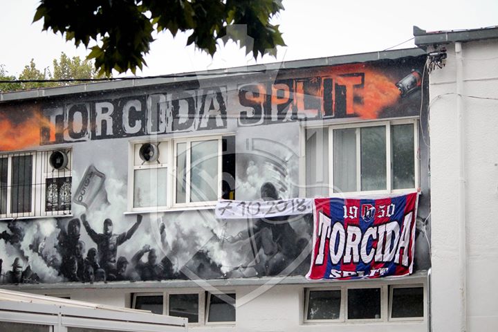 Torcidaši su se s transparentom vratili u Split i odmah ga okačili na prostorijama Kluba navijača na Starom placu.