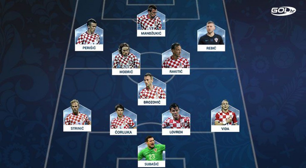 Hrvatska 1: Subašić - Vrsaljko, Lovren, Vida, Strinić - Brozović - Rebić, Modrić, Rakitić, Perišić - Mandžukić.
