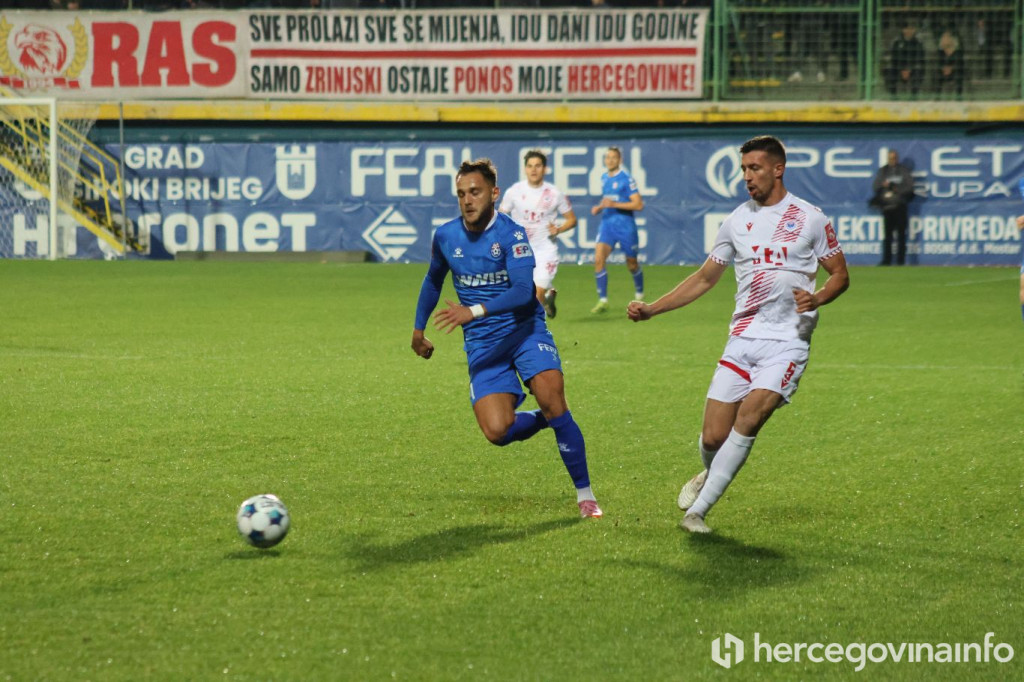 Hercegovački derbi između Širokog Brijega i Zrinjskog na stadionu Pecara na poluvremenu je završio rezultatom 1:1. Prvih 45 minuta donijelo je uzbudljiv i napet nogomet.
