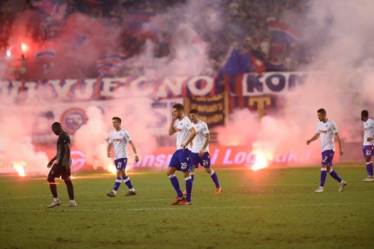 Torcida zasula bakljama igrače Hajduka nakon poraza od Gorice