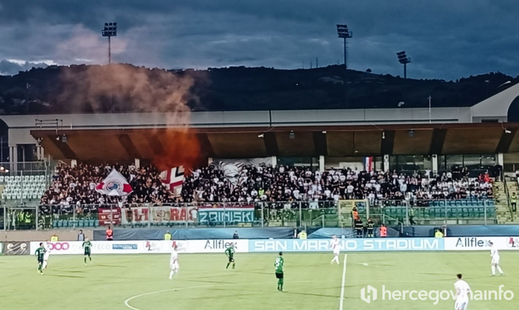 Posebnu atmosferu na stadionu stvara i snažna podrška navijača Zrinjskog – prema procjenama, u San Marino je doputovalo između 800 i 900 Ultrasa, koji su ispunili tribine i daju glasnu podršku mostarskim Plemićima.