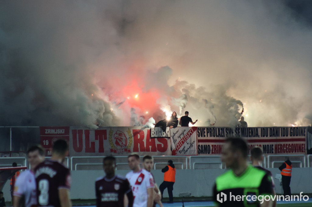 Zrinjski su bodrili najvatreniji navijači 'Ultrasi', kao i ostatak gledatelja na zapadnoj tribini.