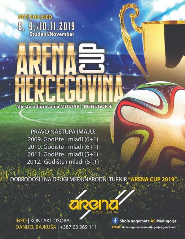 Škola nogometa AS-Međugorje je objavila na svom službenom facebook profilu kako će uskoro započeti drugi međunarodni turnir "Arena Cup Hercegovina".