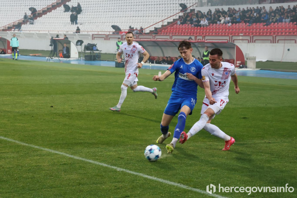 Zrinjski je od početka imao inicijativu, držao loptu i nametnuo ritam, no dugo nije uspijevao konkretizirati terensku nadmoć. Prvo poluvrijeme obilježila je borba na sredini terena uz malo pravih prilika.