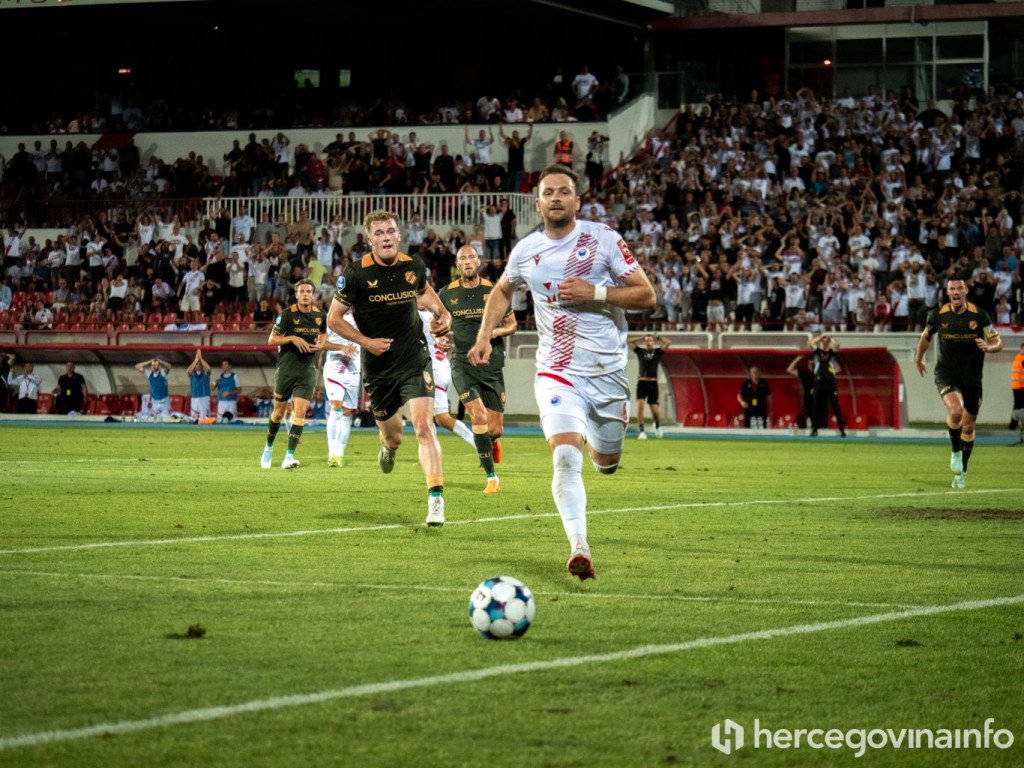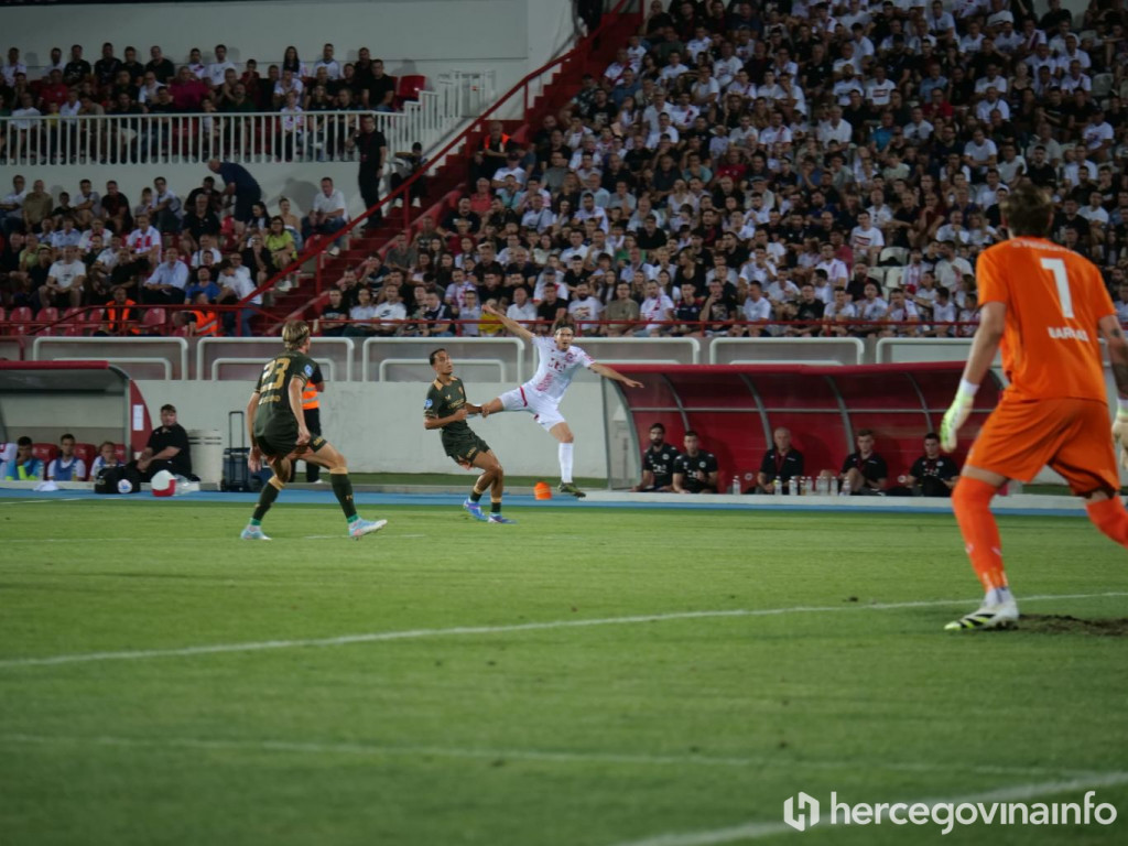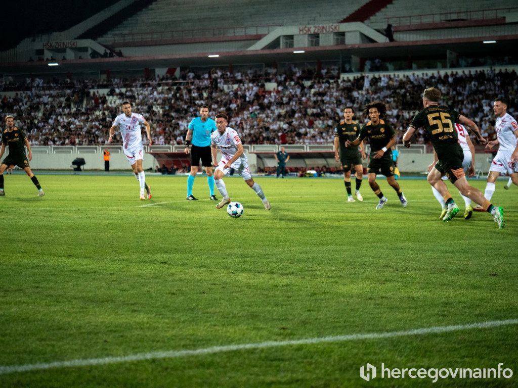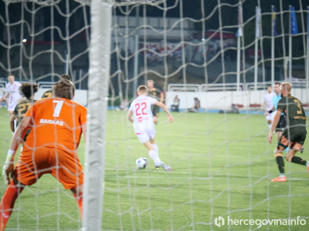 U 29. minuti odlična prilika za Zrinjski. Ubacio se Dujmović iz drugog plana, a Barkas vrhovima prstiju odbio u korner.