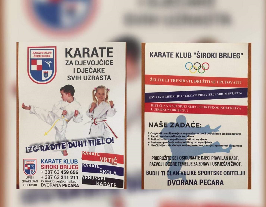 Karate klub Široki Brijeg vrši upis novih članova za dječake i djevojčice od 4 godina i više.