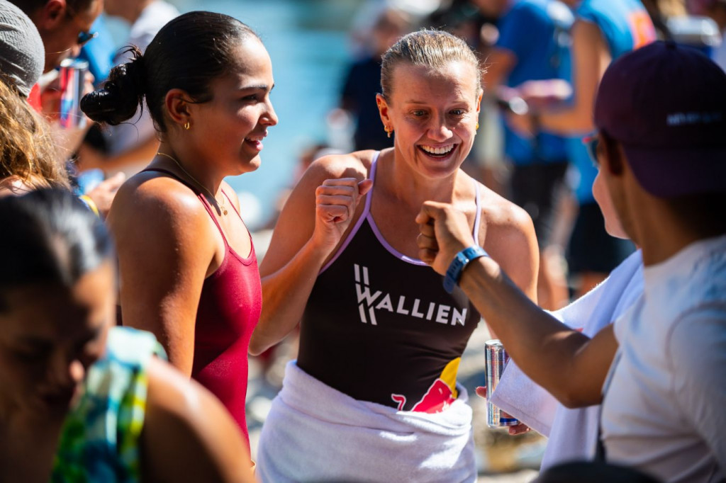 Debitantski nastup Kolumbijke Isabel Perez donio joj je visoke ocjene i peto mjesto nakon prve runde, dok je Amerikanka Lisa Faulkner preuzela vrh. Australke Rhiannan Iffland i Xantheia Pennisi te Kolumbijka Maria Paula Quintero drže drugo mjesto. Iffland, koja juri svoj deveti trofej kralja Kahekilija, ističe da pritisak ne osjeća: „Glavni cilj su četiri konzistentna skoka i da uživam u povratku u BiH.”