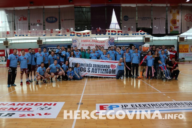 Na početku uzvratne utakmice četvrtfinala Kupa BiH igrači Hrvatskog muškog rukometnog kluba Zrinjski i rukometnog kluba Bosna Sarajevo su simbolično dali potporu osobama s autizmom s prigodnim transparentom i njihovim majicama.