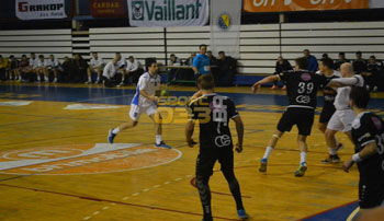 Ipak, domaća ekipa je, nošena dosta brojnom publikom, igrala sjajno i nije mogla izgubiti, a Izviđač im nije mogao parirati. U 19. minuti utakmice, Vogošća je došla do 5 golova prednosti, rezultatom 8-3, a sa dobrom i stabilnom igrom su nastavili i kako se poluvrijeme bližilo kraju. U 25. minuti, Vogošća je vodila sa 11-5, a istom razlikom privela je i poluvrijeme kraju. Rezultat nakon prvih pola sata igre bio je 13-7, a golman Edin Tatar u završnici je obranio sedmerac gostujuće ekipe.