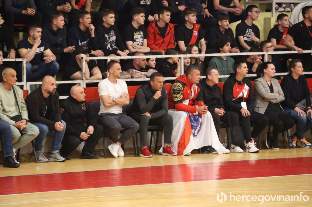 Dvorana na Bijelom Brijegu večeras je bila rasprodana, a atmosfera je prava navijačka, kako i doliči pravom derbiju.