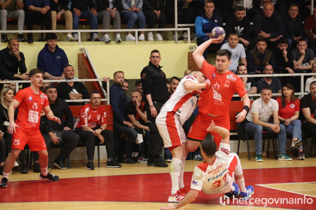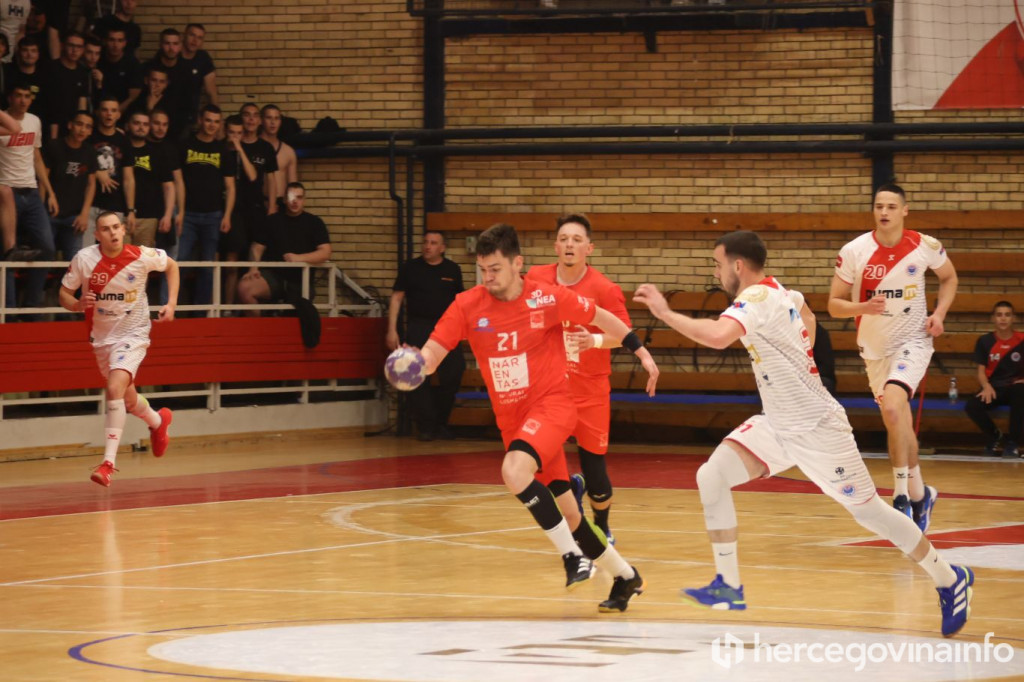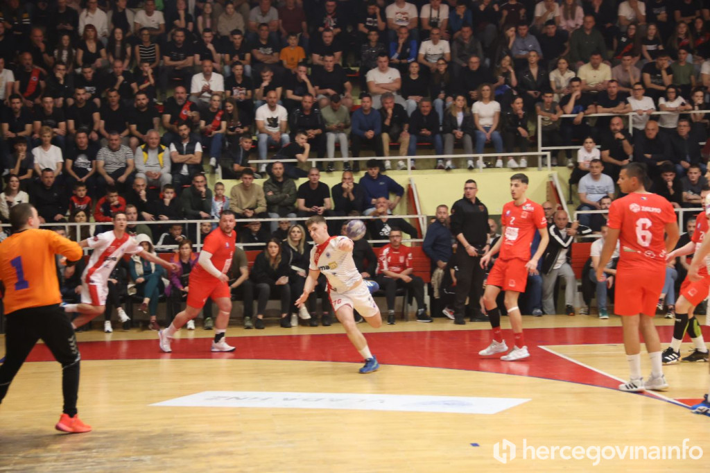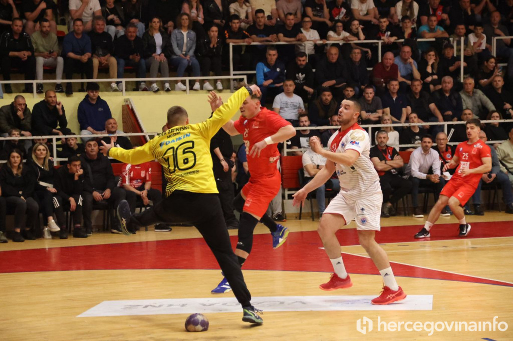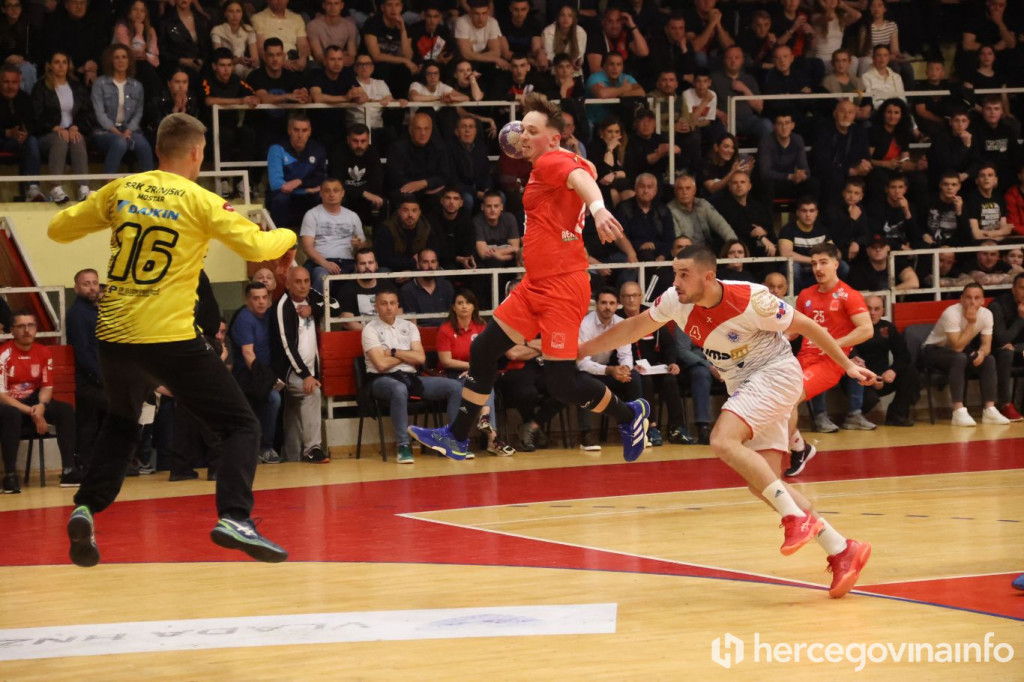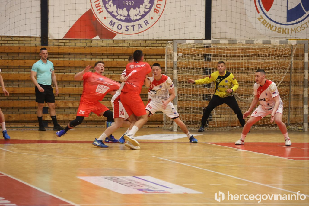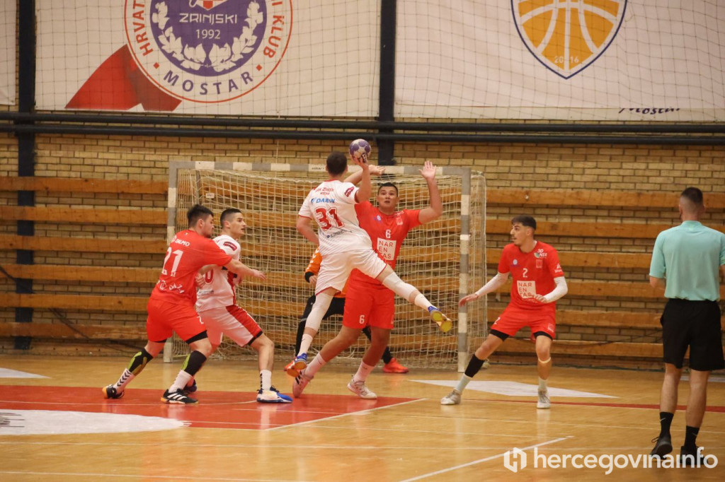 Rukometaši SRK Zrinjski večeras su u krcatoj dvorani na Bijelom Brijegu u Mostaru svladali RK Velež rezultatom 27:20 i tako preskočili gradskog rivala na prvenstvenoj ljestvici za jedan bod, te su sada glavni favoriti za ulazak u najelitniji rang rukometa u BiH.