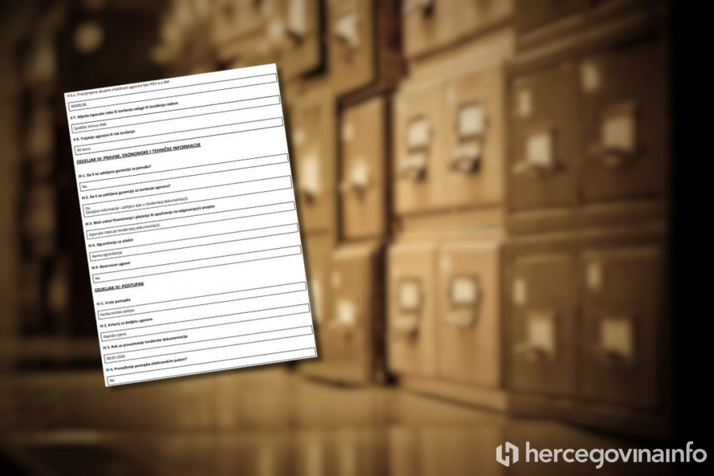 Arhiv Hercegovačko-neretvanske županije objavio je obavijest o pokretanju javne nabave za kupovinu službenog automobila, procijenjene vrijednosti 49.500 konvertibilnih maraka bez PDV-a, što bi s dodanim PDV-om od 17% ukupno bilo zapravo 57.915 KM.