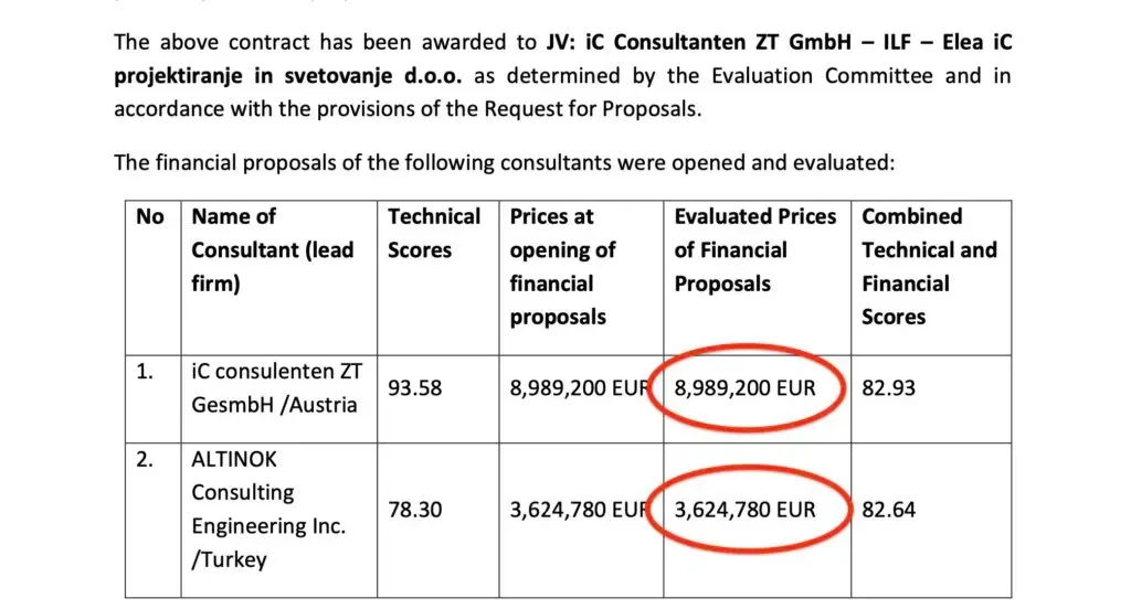U konačnici je izabran konzorcij s ponudom od 8.989.200 eura – skupljom za više od 10 milijuna KM u odnosu na Altinok. EBRD je ugovor odobrio uz napomenu da je klijent (Autoceste FBiH) odgovoran za provedbu i nadzor cijelog procesa.