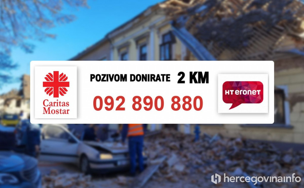 Caritas Mostar i HT Eronet uključili su se u prikupljanje pomoći za porušenu Banovinu. Pozivom na broj 092 890 880 možete donirati 2 KM.