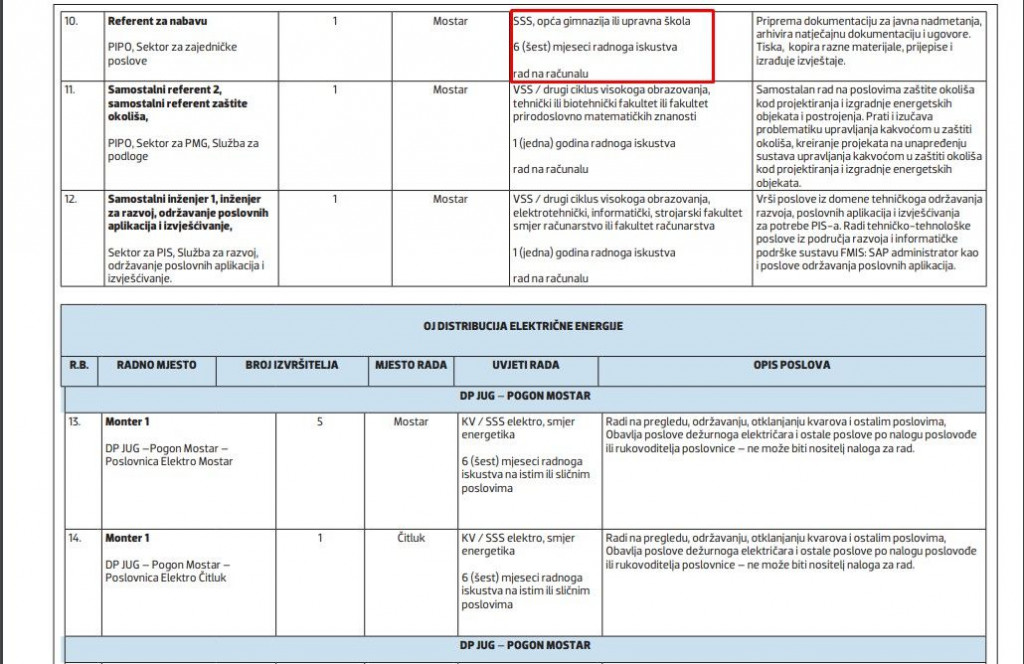 ELEKTROPRIVREDA HZ HB ZAPOŠLJAVA Referentu za nabavu treba opća gimnazija, kažu nije štela ovaj put